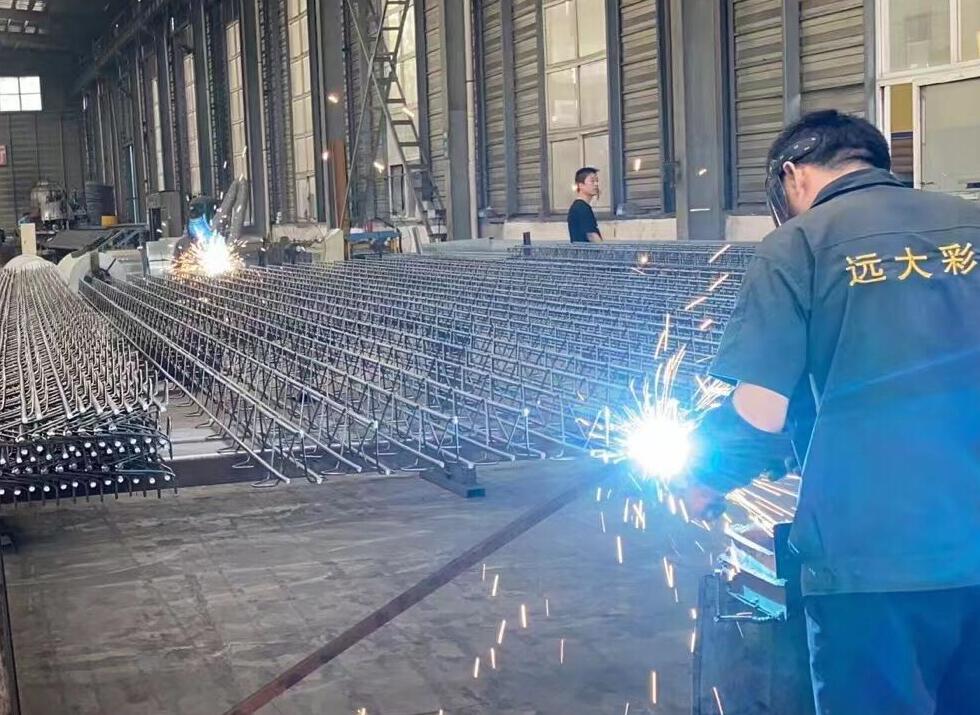 遠(yuǎn)大彩鋼桁架樓承板焊接現(xiàn)場